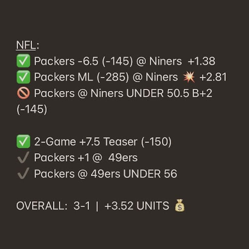 11 05 Recap Overall 3 1 3 52 Units Solid Day Last Night With Th Baseball Picks Sports Picks Packers 49ers